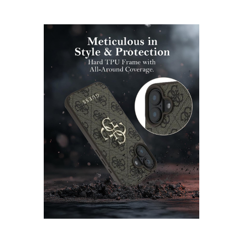 Die elegante Guess 4G Big Logo Handy-Schutzhülle schützt dein iPhone 16 zuverlässig und verleiht ihm gleichzeitig einen exklusiven Look. Das robuste Hardcase sorgt für optimalen Schutz vor Kratzern und Stößen, während das ikonische Guess 4G Big Logo in Kombination mit der edlen braunen Oberfläche für einen modernen, stilvollen Auftritt sorgt.